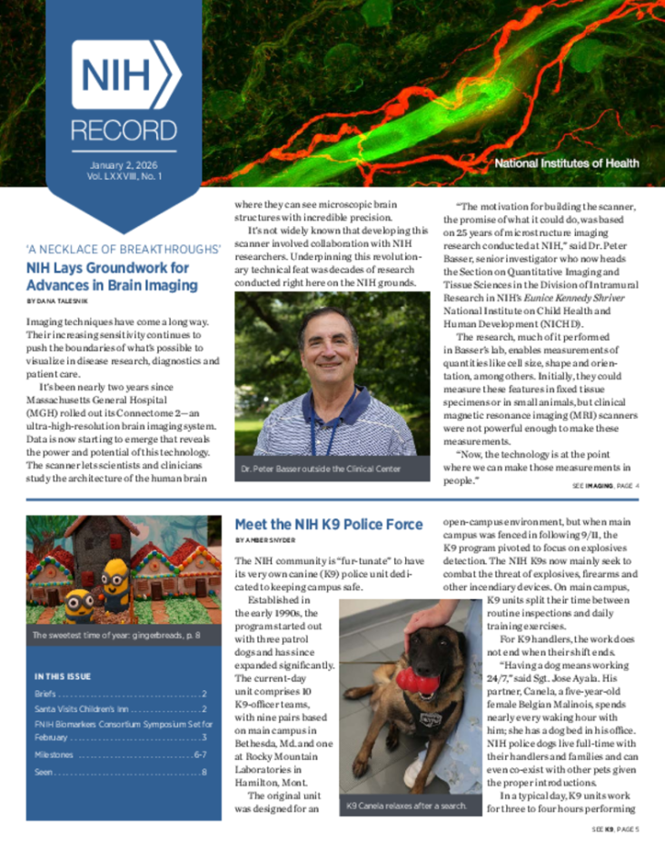 You can pick up a print copy of the Record every two weeks! Paper editions are available now in several high-traffic areas on the Bethesda campus. Look for a kiosk near you: Clinical Research Center atrium, first floor; CC café, B1-level; Bldg. 1, B1 level at the elevators; and Bldg. 31A lobby.
